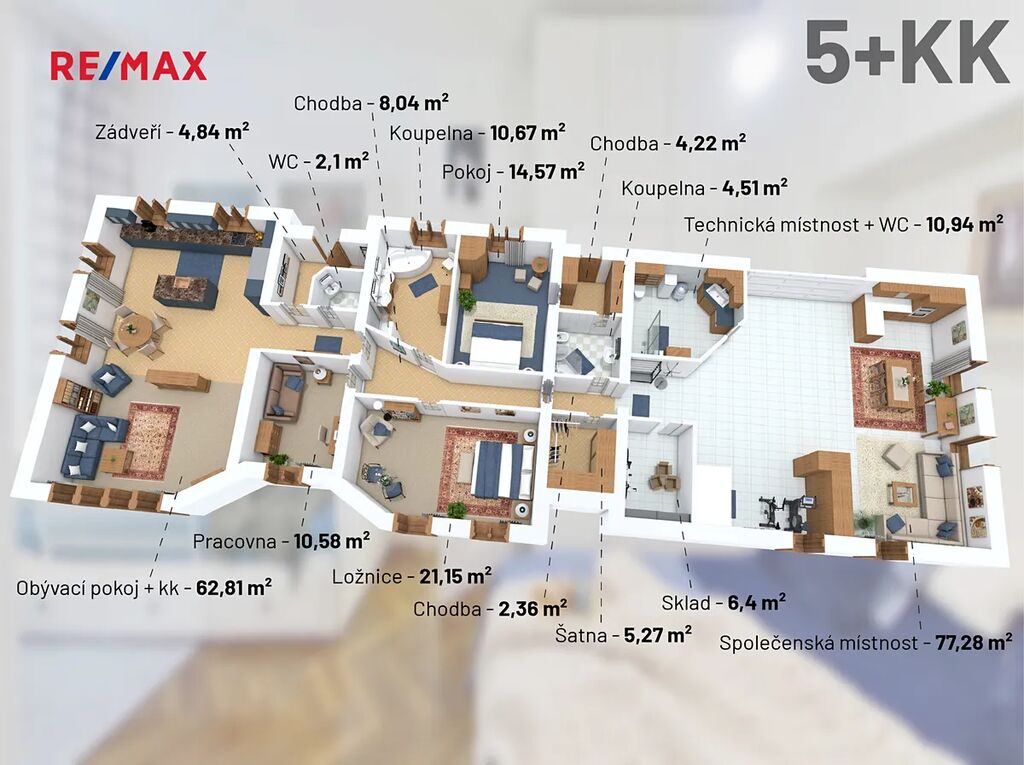 Technologie zajišťují pohodlí i soběstačnost: podlahové topení, tepelné čerpadlo Daikin, infrasauna, klimatizace, vlastní studna s čističkou vody, elektrická posuvná brána. V interiéru zaujme kuchyňská linka s deskou z brazilské žuly i zakázkové dveře z masivu.