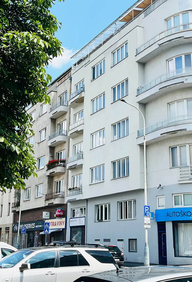 Rádi bychom Vám představili k prodeji velmi zajímavý byt s halou a se dvěma terasami, s možností případné redispozice, nacházející se v pátém patře kvalitně opraveného funkcionalistického domu s novým výtahem, v ulici Podolská na Praze 4. K obrovské výhodě jednotky patří pak zejména dvě velkorysé soukromé terasy (+ 22m2) s dechberoucím výhledem na Prahu a Podolí. Ty jsou orientovány západ - východ.
