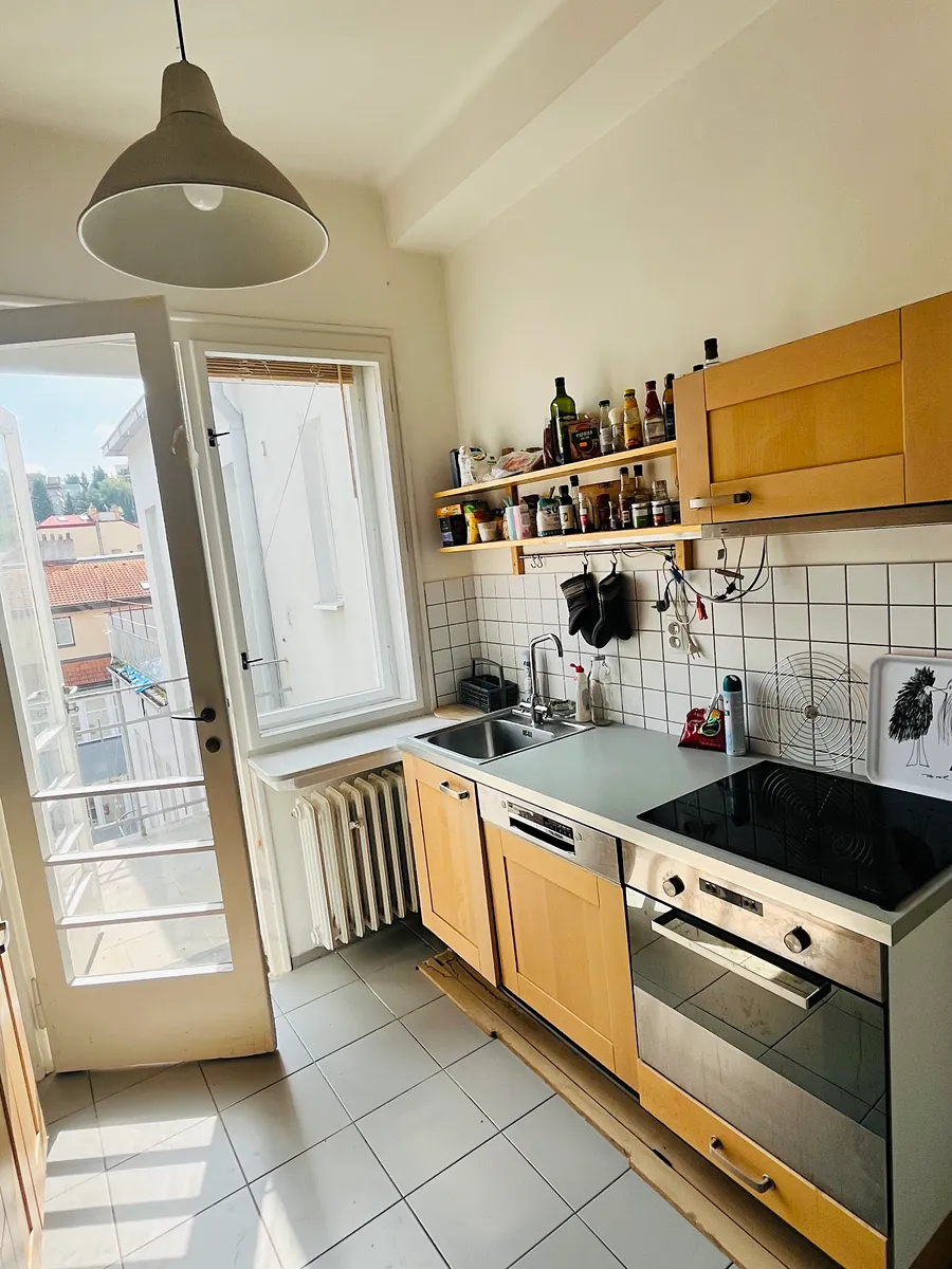 Byt je řešen zcela v duchu doby, především prakticky. Nabízí dva veliké a světlé obytné pokoje s okny na západ, dále velikou halu, prostornou koupelnu s oknem, sprchou a rohovou vanou, WC zvlášť. Kuchyně s jídelnou je stranou, má vlastní letní terasu, směřuje na východ do klidného vnitrobloku.
