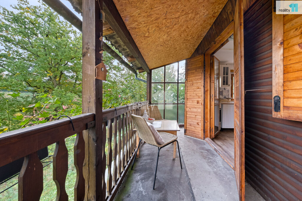 Zprostředkuji prodej dřevěné chaty, která se nachází na pozemku velikosti 482 m², v obci Barchovice, katastrální území Hryzely. Chata disponuje hlavní obytnou místností s kuchyňskou linkou, se vstupem na prostorný balkon a výhledem do přírody. Dále ložnicí a koupelnou se sprchovým koutem a WC. Chata je podsklepená a nabízí tak dostatek prostoru pro uskladnění nářadí, dřeva nebo sportovního vybavení. Z inženýrských sítí je zavedena elektřina, voda je přivedena z vlastní studny, odpad je sveden do septiku. Vytápění je řešeno kamny na dřevo nebo elektrickým panelem. Na pozemku je solární sprcha a koupací káď, které jsou příjemným bonusem v letních měsících. Zatravněný svažitý pozemek nabízí možnost vytvořit terasovité záhony nebo osázení okrasnou zelení. Součástí prodeje je i podíl 1/9 na příjezdové cestě.