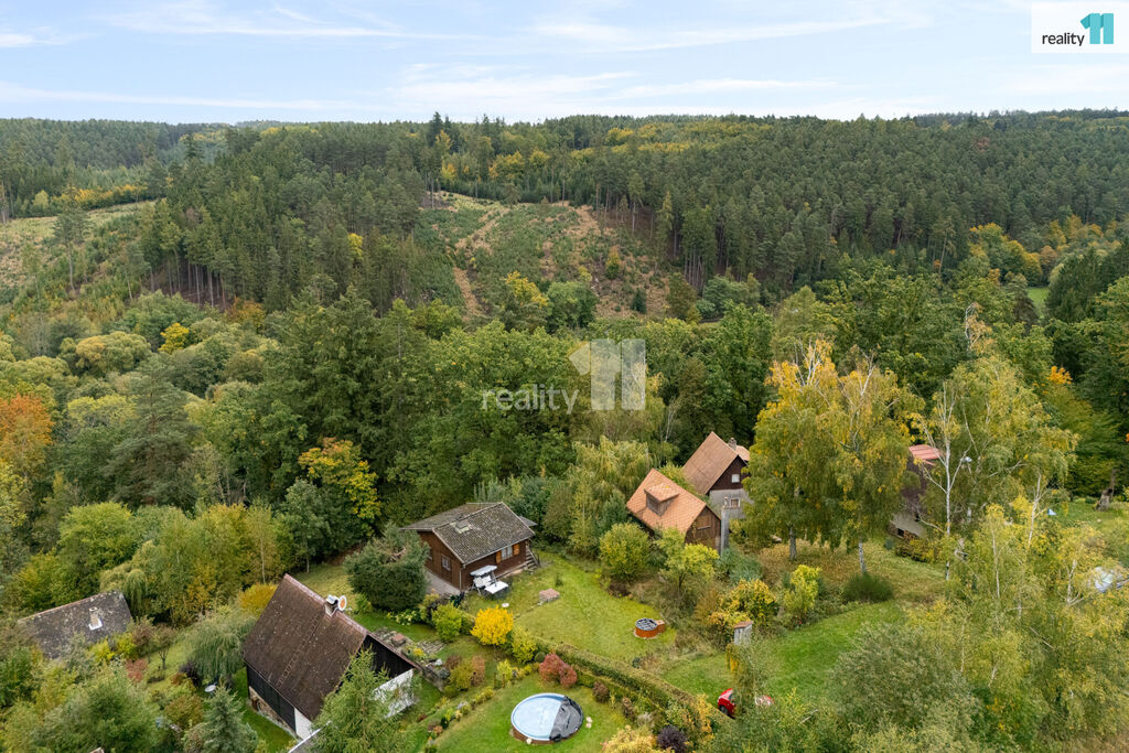 Okolí tvoří lesy, příroda a soukromí, přesto je dobře dostupné autem. Nemovitost je ideální pro víkendový odpočinek, letní dovolenou nebo celoroční relax v přírodě. Ev. číslo: 27835.