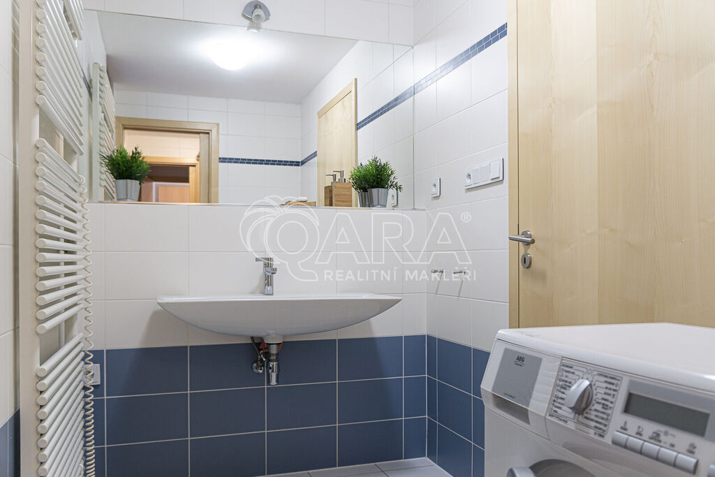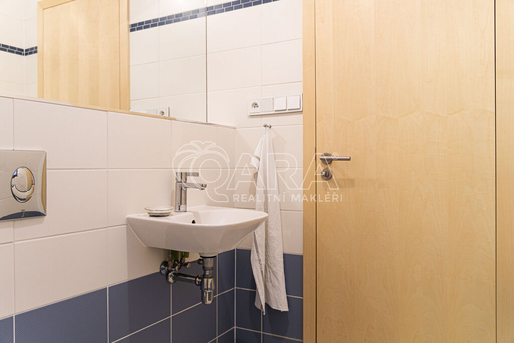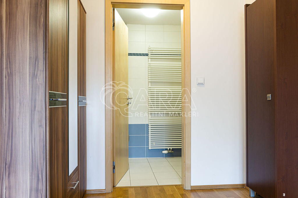 Koupelna je vybavena vanou a toaletou. Díky francouzským oknům v obývacím pokoji je byt velmi světlý, venkovní žaluzie na oknech umožňují regulaci světla podle vašich potřeb. Pokoje jsou vybaveny klimatizací. Byt se pronajímá nezařízený.
