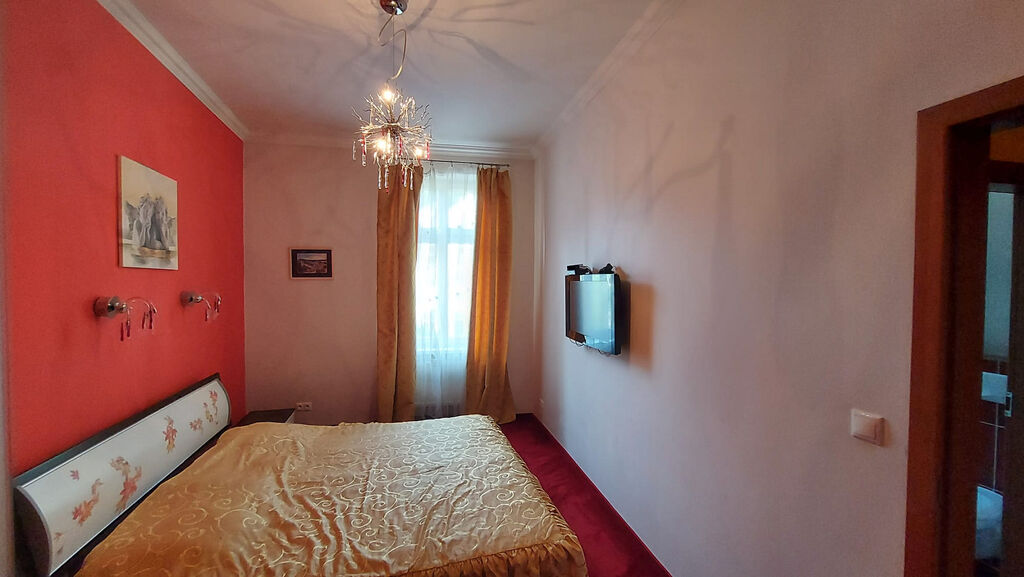 Nabízí se na prodej velký zařízený byt 3kk v osobním vlastnictví. Byt se nachází v 1. patře cihlového domu na hranicí lázeňského území města. Byt se prodává včetně nábytku a kuchyňské linky se spotřebiči. Topení a ohřev vody v bytě jsou zajištěny plynovým kotlem Beko. Podlaha v koupelně a předsíni je ohřívaná. V bytě je vlastní elektrická sauna. Koupelna disponuje velkou sprchovou kabinou s masážní sprchou. V dětském pokoji je vestavěná skříň a dostatečné množství úložného prostoru. V ložnice se nachází velká šatna.