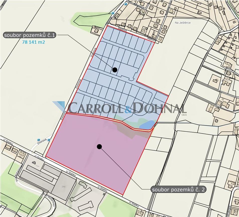 Nabízíme k prodeji soubor pozemků pro výstavbu rodinných domů v Ostravě- Bartovicích o celkové velikosti 78 141 m2. Z toho celková výměra stavebních parcel činí 67 134 m2, zbytek jsou komunikace. Většina parcel má výměry 1000- 1500 m2, některé jsou větší. Na pozemek již byla vypracována studie zastavitelnosti a bylo vydáno stavební povolení na vybudování technické infrastruktury (komunikace, inženýrské sítě). Více informací sdělíme telefonicky.