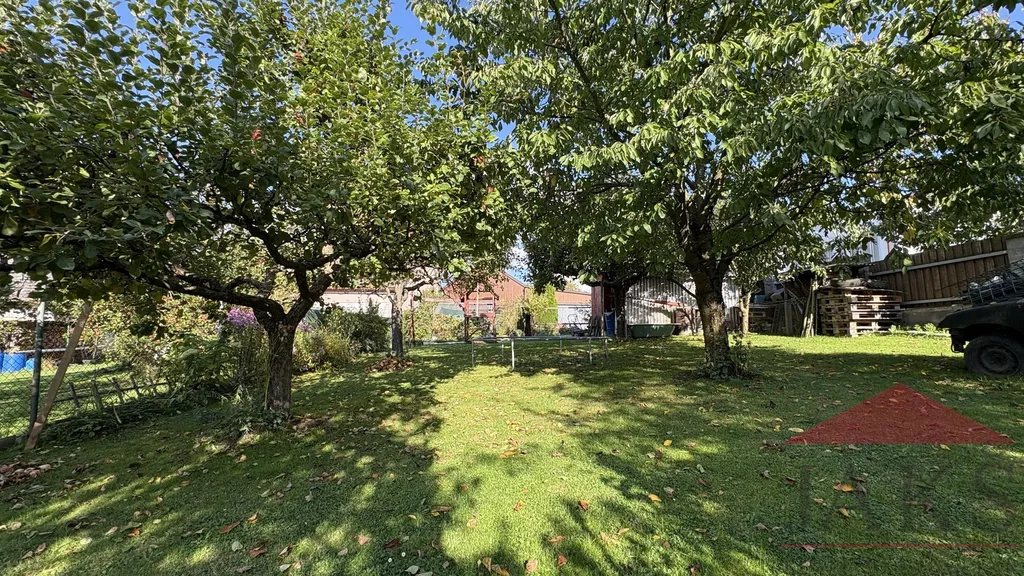 Zahrada: 587 m2 Schovaná za domem, oplocená, udržovaná, slunná, pěstěná zahrada s vyrovnaným místem na bazén či trampolínu, plodícími ovocnými stromy (jabloně, švestky, hruška a nektarinka) a keři (jahody, maliny, ostružiny, víno, rybíz...) a brankou s vjezdem na polní cestu.