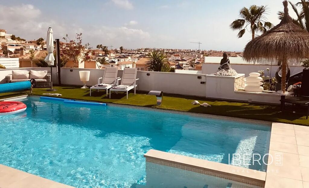 Tato krásná novostavba vily v Ciudad Quesada je postavena na pozemku o rozloze 1000 m² a skládá se ze 3 budov. Hlavní budova zahrnuje dům s obývacím pokojem/jídelnou o rozloze 70 m², otevřenou kuchyní s ostrůvkem, 2 velkými ložnicemi a 2 koupelnami a střešní terasou o rozloze 120 m².