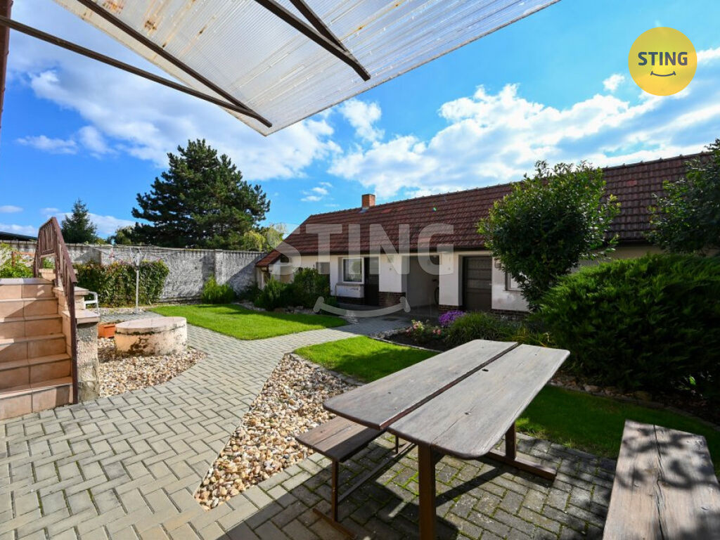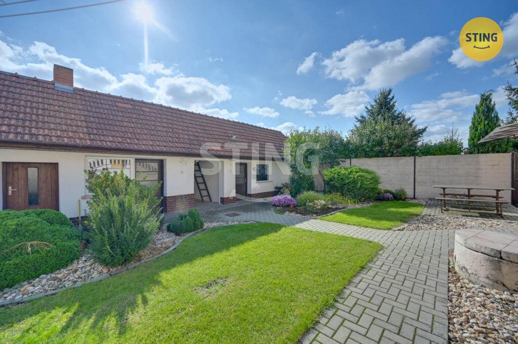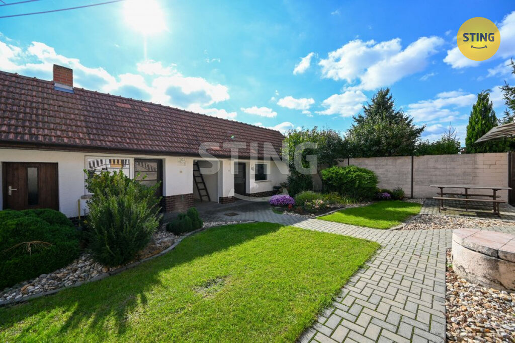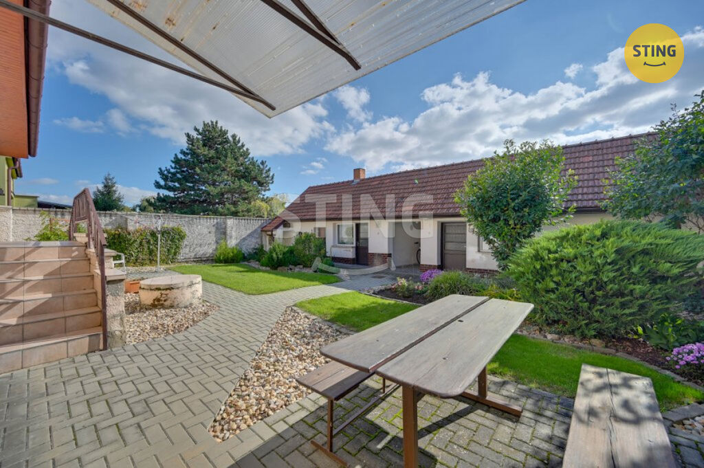 Na dům navazuje uzavřený dvůr, hospodářské stavení, letní kuchyně a dvě garáže, ke kterým jde přijet z boční cesty, tedy každá má přístup mimo dům. Dále pokračuje krásná, udržovaná zahrada s ovocnými stromy, která nabízí dostatek prostoru pro odpočinek, zahradničení i rodinné aktivity. Příjezd do zahrady je možný i z druhé strany pozemku, vybudována brána.