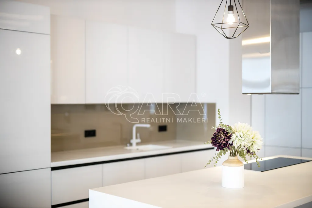 Bytu dominuje otevřený prostor obývacího pokoje s kuchyní, dvě prostorné ložnice, jedna ložnice s vlastní koupelnou s vanou a sprchovým koutem, druhá koupelna opět s vanou a sprchovým koutem.