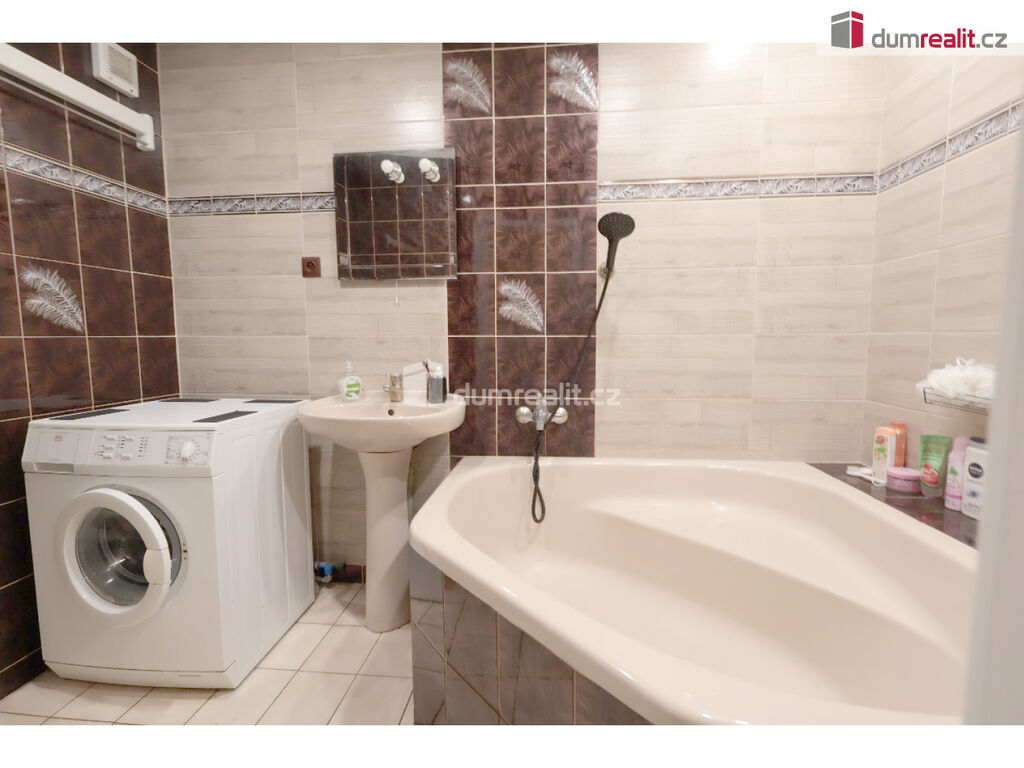 Dumrealit.cz Vám zprostředkuje exkluzivně pronájem bytu 3+ kk (72 m²) s lodžií (6 m²) v klidné části Prahy 10 – Petrovice, ulice Frostova. Nabízený byt je ve 3. patře sedmipatrového patrového panelového domu, který prošel kompletní rekonstrukcí (nová plastová okna, rozvody, fasáda se zateplením, vstupy na čip, interiéry, nový výtah, lodžie). Dispozici tohoto velkého, světlého bytu 3+ kk (72 m²), který je po částečné rekonstrukci tvoří: prostorný obývací pokoj (32 m²) + kuchyňský kout se vstupem na lodžii (6 m²), dále ložnice (12,2 m²), dětský pokoj (13,2 m), chodba (5,3 m²) a zádveří s vestavěnou skříní (2,6 m²). Další místností bytu je zděná koupelna s vanou, pračkou, umyvadlem (5,2 m²) a samostatná toaleta (1 m²). Vše na foto mimo osobních věcí nájemce je v ceně nájmu, kuchyně je vybavena lednici s mrazákem, vestavěnou troubou + mikrovlnkou, myčkou, digestoří, plynovou deskou. Nábytek který je může zůstat - vše dle dohody. Okna v celém bytě jsou plastová, se žaluziemi, orientace jih / obývací pokoj a ložnice a dětský pokoj na sever. Pronajímatel garantuje stabilní a dlouhodobý pronájem, nájemní smlouva je na rok s možností pravidelného prodlužování. Zvíře – řešíme individuálně+ více info v RK. V blízkosti domu je kompletní občanská vybavenost, vč. zastávek autobusu MHD s dobrou dostupností na metro C – Háje (10 minut busem), za domem je park. Parkování za domem je bez problémů. Doporučuji těm klientům, kteří hledají velký a světlý byt 3+1 s lodžií, k pronájmu po částečné rekonstrukci v klidné části Prahy - Petrovice, obklopený přírodou, s dobrou občanskou vybaveností a dostupností do centra města. Ev. číslo: 652773.