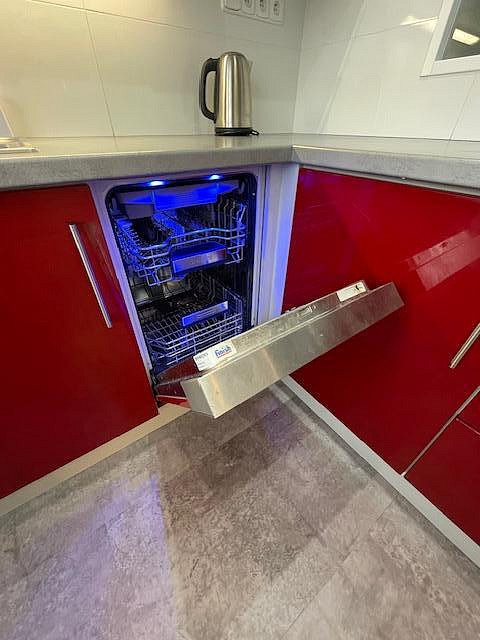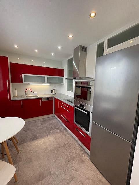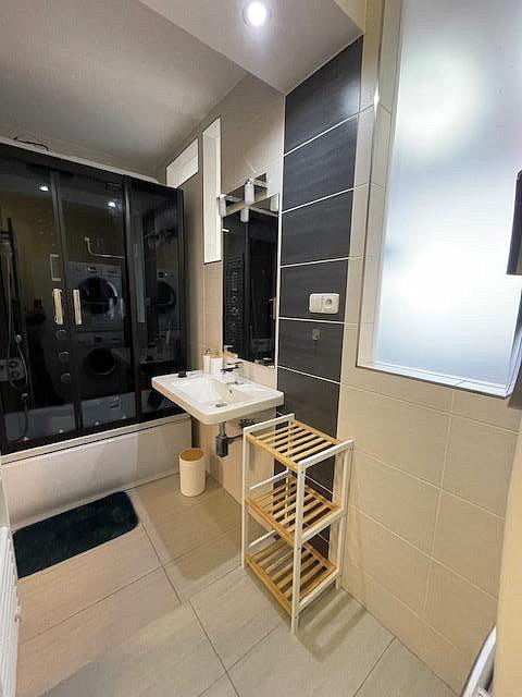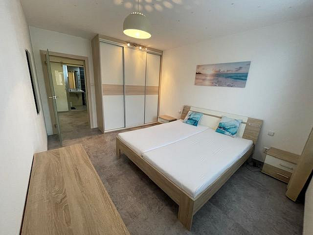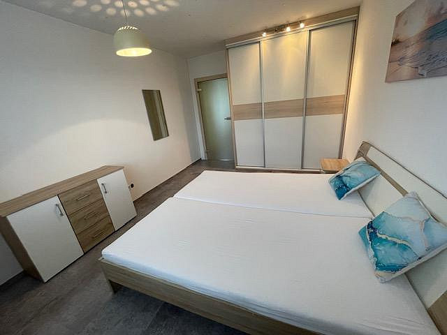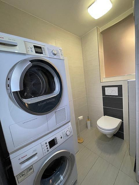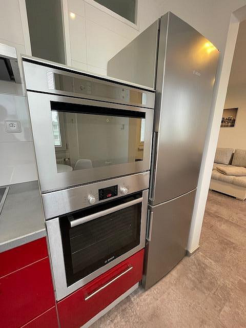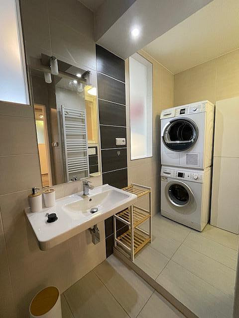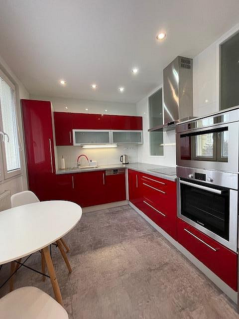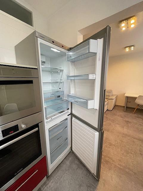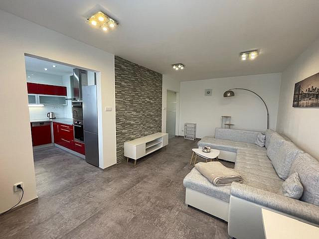 Byt je kompletně vybavený moderním nábytkem, spotřebiči i nádobím, stačí se pouze nastěhovat. Součástí výbavy je pračka se sušičkou, myčka, lednice, vestavěná, mikrovlnná trouba, indukční varná deska, trouba a vestavěné skříně na míru. Kuchyň je prakticky řešená s důrazem na detail a úložný prostor.