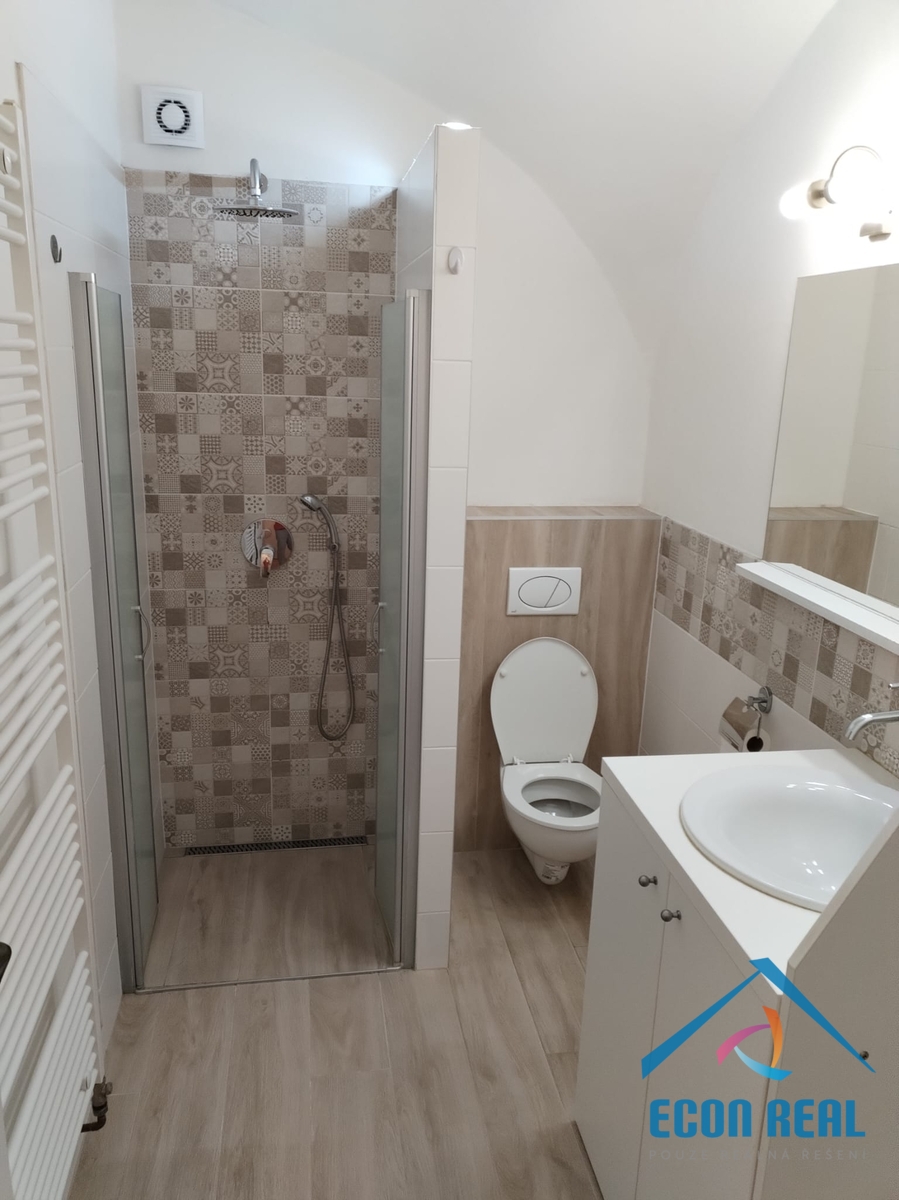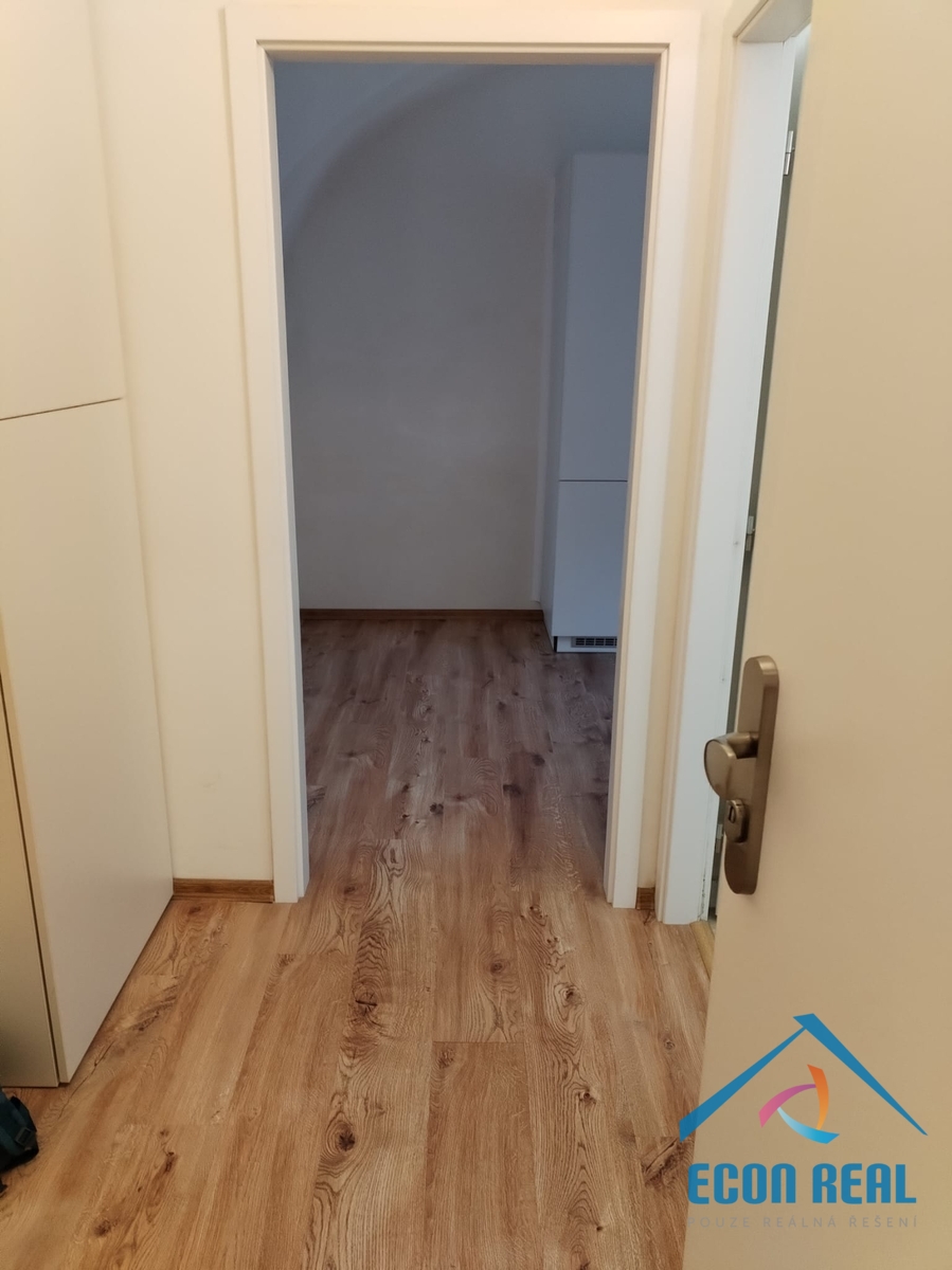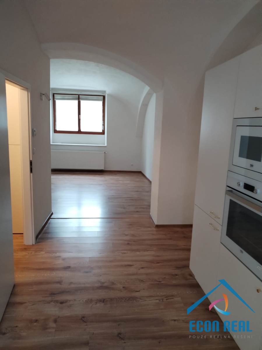Byt s romantickými obloukovými klenbami a kuchyňskou linkou vybavenou spotřebiči se nachází v historické budově s přístupem přes prostorný dvůr domu s možností parkování 1 vozidla. Byt disponuje předsíňkou, ve které je umístěno i technické zázemí (elektrický kotel a bojler na ohřev vody) a hlavní část je opticky stavebním otvorem rozdělena na zadní pokoj a přední část s moderní kuchyňskou linku se sklokeramickou deskou, elektrickou troubou, lednicí s mrazákem a myčkou. Koupelna nabídne prosklený sprchový kout, umyvadlo se skříňkou a zrcadlem, toaletu a přípojku na pračku. Byt má velká okna směřující do dvora a do zahrady. Topení řešeno elektrokotlem, ohřev teplé vody pomocí velkokapacitního bojleru. Byt se pronajímá nevybavený (pouze uvedené zařízení). Interiér si zařizuje nájemce sám. Na podlaze plovoucí podlahy a dlažby. Byt je prostorný, velmi světlý, tichý a dobře řešený.