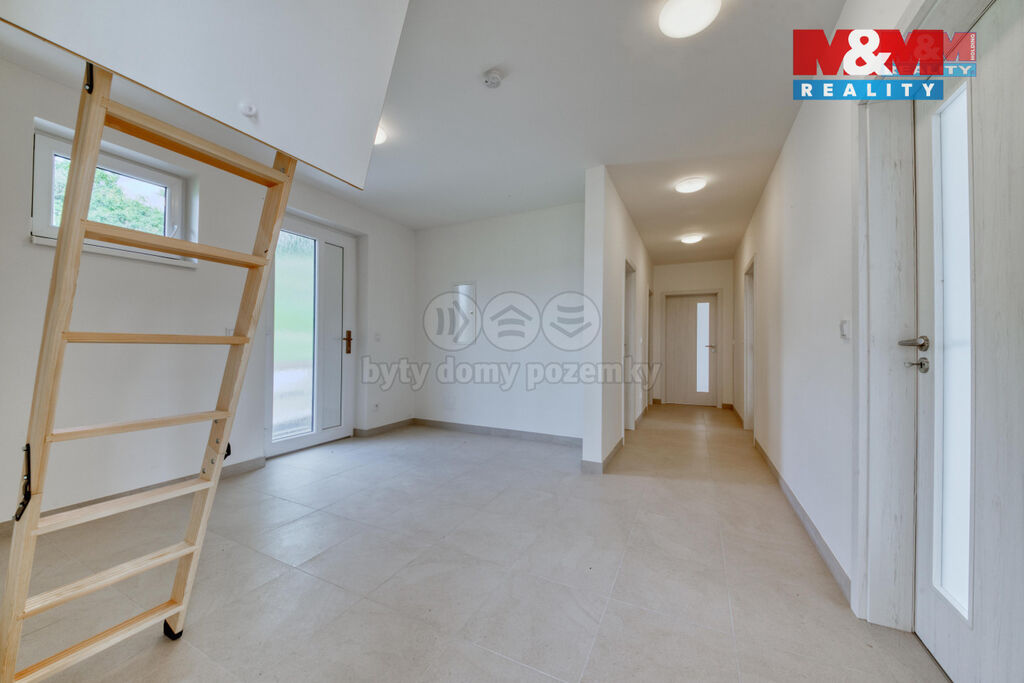 Nabízíme k prodeji rodinný dům 4+kk o užitné ploše 128 m² v malebné obci Sýkořice, okres Rakovník. Tato cihlová novostavba nabízí moderní a nízkoenergetické bydlení v klidné části obce s výbornou dostupností do Prahy. Dům zahrnuje prostorný obývací pokoj s kuchyňským koutem, ložnici se šatnou, dva dětské pokoje a koupelnu se sprchovým koutem a toaletou. Podlahové topení zajišťují komfortní bydlení po celý rok. Výsuvné schodiště v chodbě vede na půdní prostor, který lze přeměnit na další obytnou zónu. Na pozemku o rozloze 738 m² se nachází septik. Veškerá občanská vybavenost je dostupná do 3 km. Pro více informací a osobní prohlídku kontaktujte makléře. S financováním Vám rádi pomůžeme.
