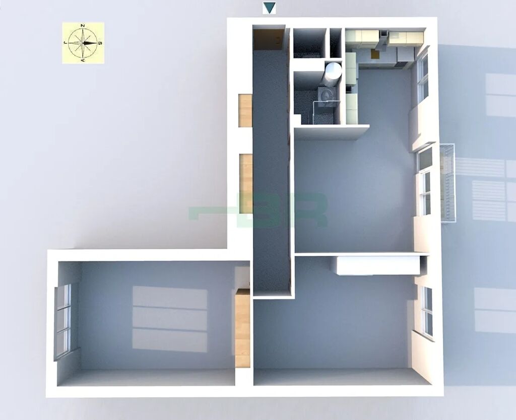 Byt 3+kk/B, 68 m2 + 1,6 m2 balkon + 2,5 m2 plaňkový sklep, 5. patro z 5, s výtahem.