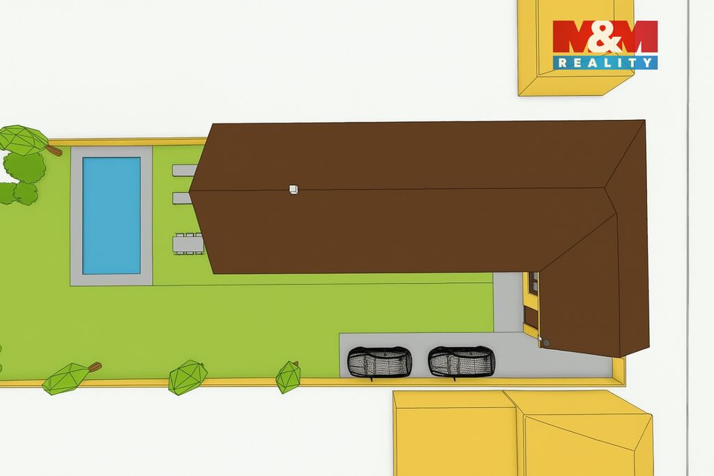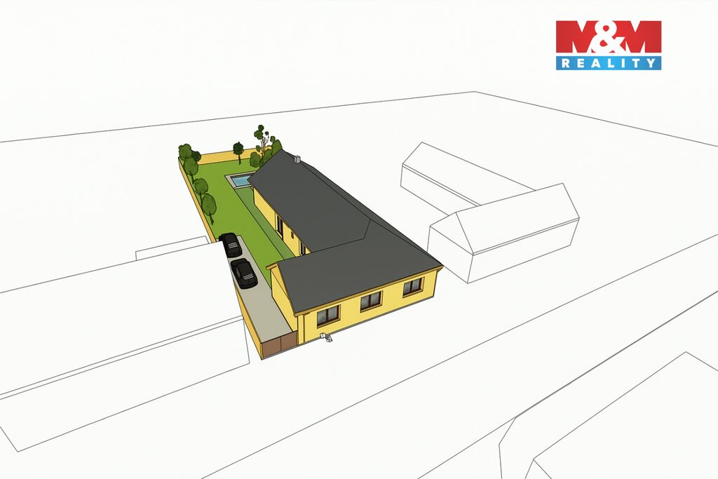 Součástí nabídky je stavební povolení a projektová dokumentace na výstavbu moderního rodinného domu 4+kk s podlahovou plochou 162 m². RD je navržen ve tvaru písmene L – jednopodlažní, nepodsklepený, zděný z keramických bloků.