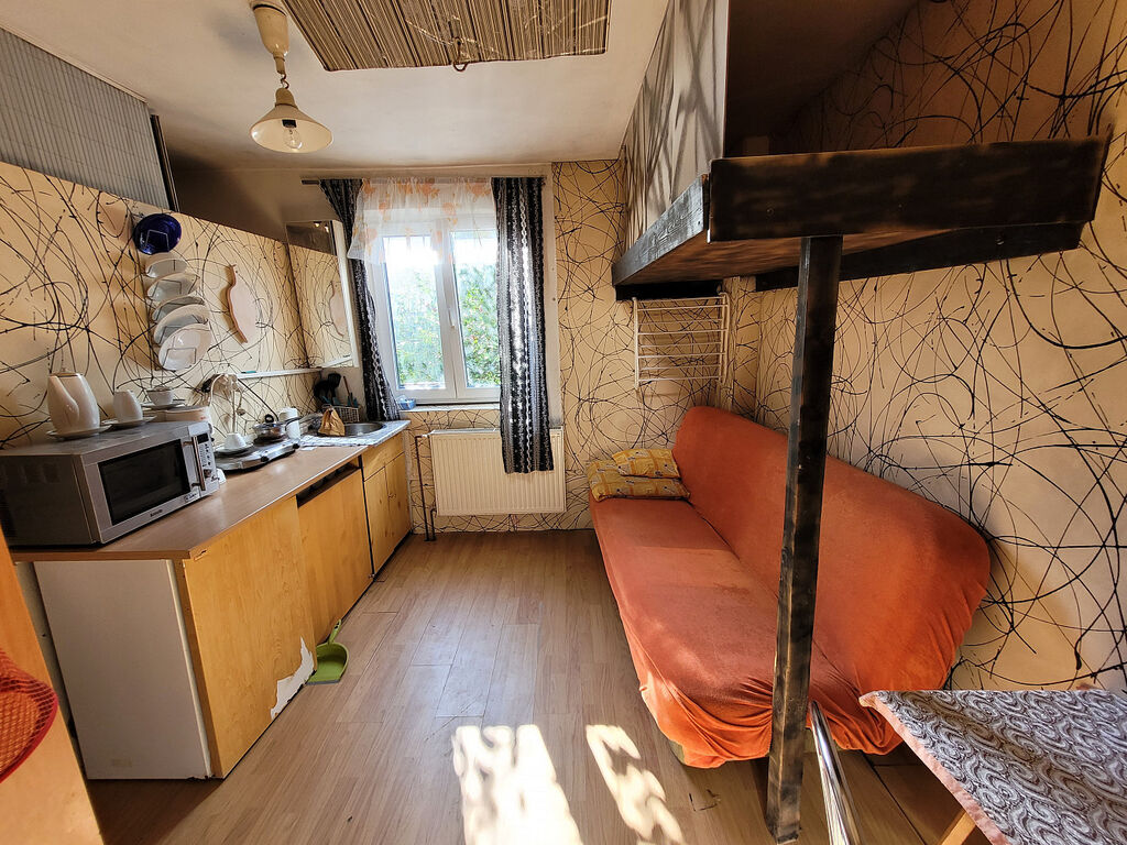 Jedná se o cihlový byt o celkové ploše 25 m² se společným posezením v zahradě, majitel nyní dokončuje balkon, který povede z kuchyně.