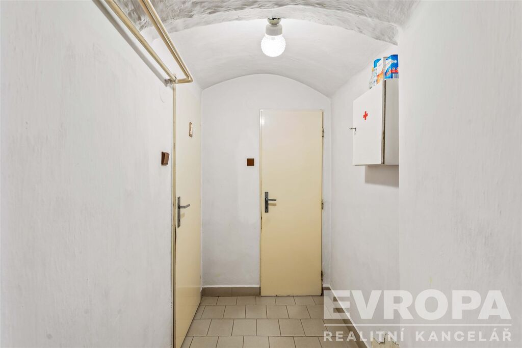 V přízemí se nachází vstupní chodba (7,7 m2) s dominantním schodištěm, kuchyně s jídelnou (12,7 m2) průchozí do obývacího pokoje (23,2 m2), koupelna (4,2 m2), ložnice (13,1 m2), samostatná toaleta, spíž (3,05 m2) a veliký sklep s klenutými stropy (16,4 m2).