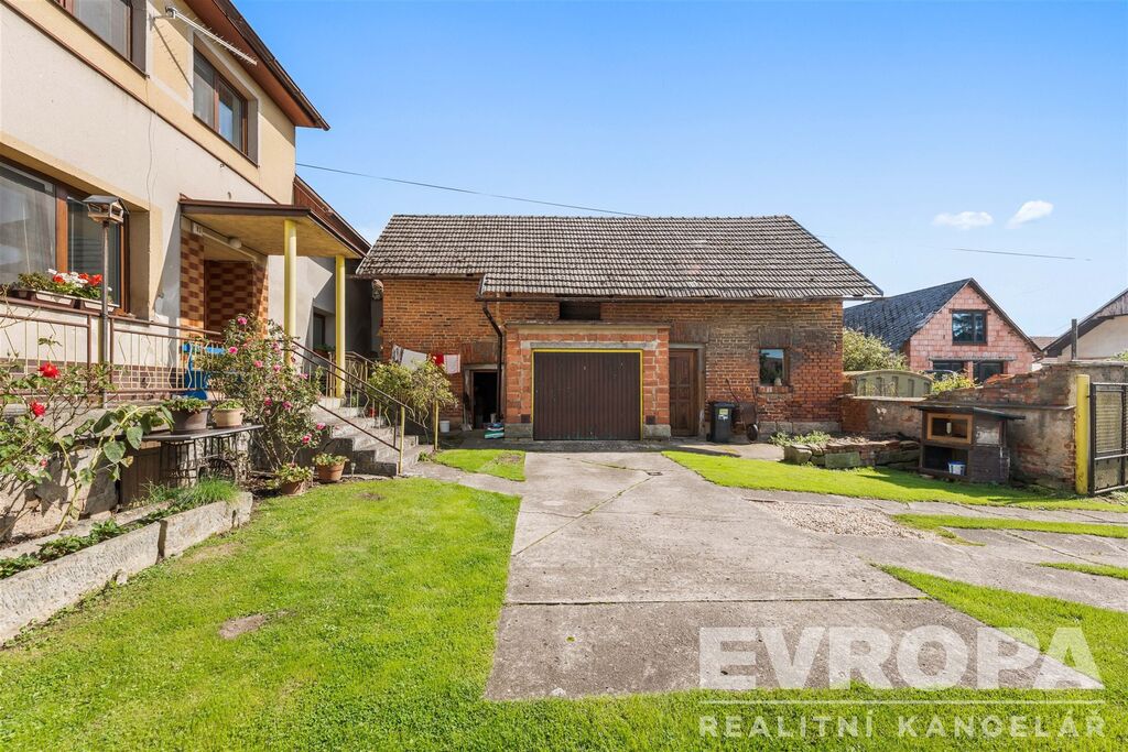 Dominantou domu je krásná udržovaná oplocená zahrada na níž stojí dřevěná kůlna a cihlová stavba (přídomek) ve velmi dobrém stavu s prostory bývalých chlévů a oddělená garáž na jeden OA. Na zahradě v zemi je nádrž o velikosti 1000l na dešťovou vodu.