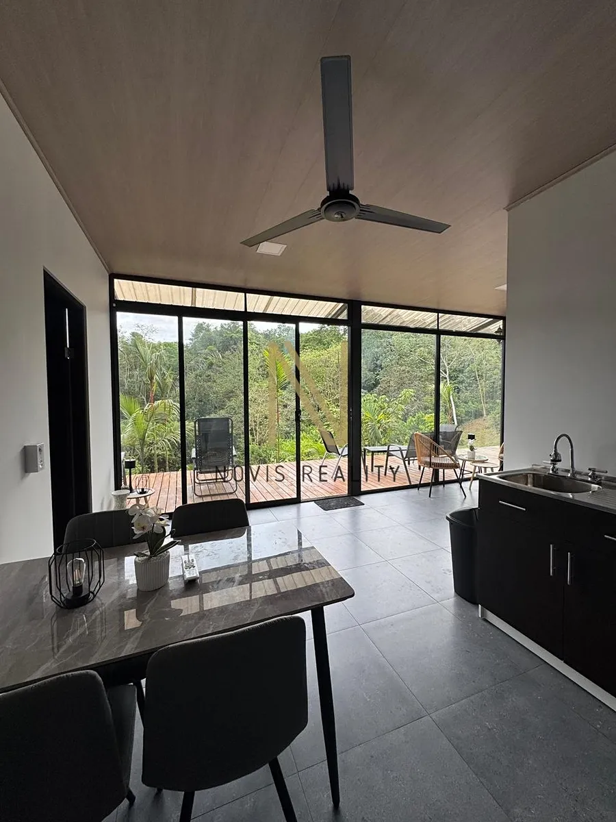 Nově postavený, moderní dvoupatrový dům s úchvatným výhledem na bujnou džungli se nachází na malebném svahu, jen pár minut od oceánu.