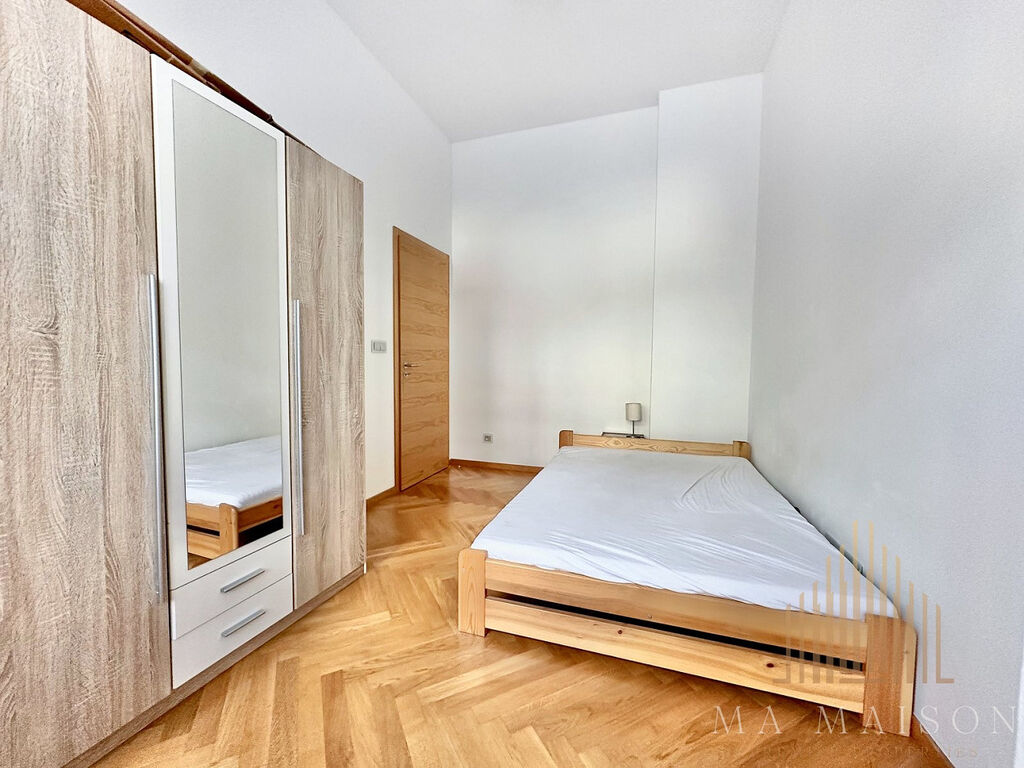 Byt se nachází v 1. nadzemním podlaží revitalizovaného historického domu s výtahem a sestává se ze: vstupní chodby, dvou ložnic, koupelny s WC a sprchovým koutem, jídelnou s kuchyňskou linkou a komorou. Koupelna je vybavena umyvadlem, umyvadlovou skříňkou, zrcadlem. V komoře najdete pračku. Byt je částečně vybaven – v každé z ložnic se nachází manželská postel včetně matrací, noční stolek, psací stůl s židlí a skříň. Kuchyňská linka je téměř kompletně vybavena – sklokeramická varná deska s troubou, digestoř, mikrovlnná trouba, lednice s mrazákem. Na chodbě botník, na stěnách obrazy, v jídelně stůl s židlemi.