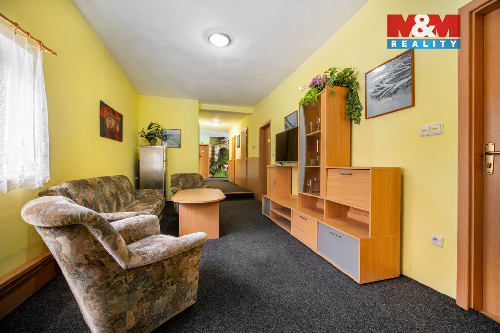 Nabízíme Vám ke koupi zavedený penzion v obci Libchavy. Nachází se u hlavní komunikace ve směru na Hradec Králové a Svitavy. V přízemí penzionu se nacházejí tři trojlůžkové pokoje a tři dvoulůžkové, včetně sociálního zázemí, dále společenská místnost, recepce, společná kuchyň, čtyři sklady a technická místnost. Ve 2. poschodí se nachází bytová jednotka s prostornou terasou a vlastním vstupem po venkovním schodišti. Dispozice bytové jednotky: vstupní chodba, kuchyň včetně jídelny se vstupem na terasu, obývací pokoj, chodba, špajz, dvě toalety, dvě koupelny, tři ložnice. Bytovou jednotku lze předělat na čtyři dvoulůžkové pokoje. Náleží k němu vlastní parkoviště, zastřešení pro osobní automobily, kůlna a udržovaná zahrada. Vytápění plynovým kotlem, ohřev vody bojler. Možné využití: rozdělení na bytové jednotky, rodinný dům, zázemí pro firmu, ubytování pro seniory, atd. Penzion je připraven k okamžitému využití. Pokud Vás tato nabídka zaujala, zavolejte si pro více informací