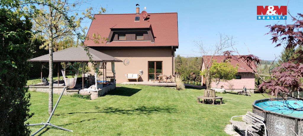 Hledáte moderní bydlení v srdci přírody pouhých 30 minut jízdy autem od Prahy? V zastoupení majitele nabízíme prodej RD o dispozici 4+KK na vlastním pozemku 1319 m² v obci Krámy nedaleko vodní nádrže Slapy. Dům byl postaven v roce 2018 a je ve velice dobrém stavu. Kromě velkého a útulného bytu dům disponuje prostornou půdou. Na pozemku se nachází zděná garáž se sedlovou střechou, pod kterou naleznete velký úložný prostor, dále i kůlna pro zahradní nářadí. Jistě oceníte i velkou a vkusně zařízenou zahradní pergolu, pod kterou budete trávit klidné letní večery, nebo zde uspořádáte zahradní party pro své kamarády. Velká udržovaná zahrada je ideálním místem, kde si mohou v bezpečí hrát vaše děti a i vaši domácí mazlíčci zde budou mít dostatek prostoru. Tato nemovitost je ideální volbou pro milovníky přírody, turistiky nebo cykloturistiky. V zadní části zahrady je vybudován pevný základ o rozměru cca. 20 m²včetně vody a elektřiny, který poslouží pro letní kuchyni, saunu či hřiště.