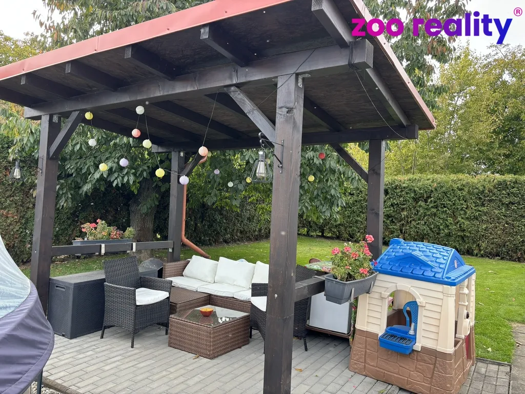 Součástí pozemku jsou také zděné přístavky pro uskladnění zahradní techniky, vinný sklípek, zahradní pergola, kryté posezení s udírnou, bazén a rozsáhlá zahrada s ovocnými stromy, odkud se otevírá krásný výhled do okolní přírody.