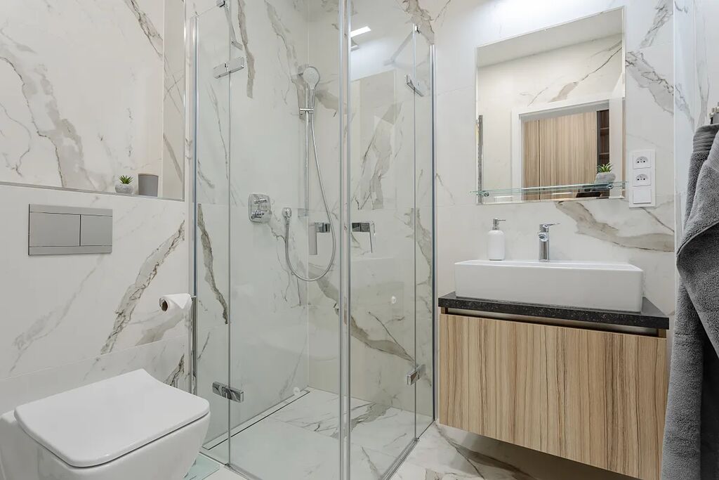 Jsou zde kvalitní dřevěné podlahy, podlahové vytápění a cirkulace vzduchu. Celý byt je plně klimatizovaný. Dostatek úložného prostoru zajišťují vestavěné skříně v předsíni nebo prostorný zděný sklep 5m2.