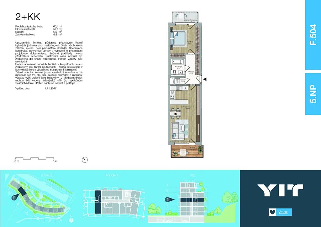 Nabízíme k dlouhodobému pronájmu plně zařízený byt 2+kk, o velikosti 60,1 m², se dvěma balkony 4,4 m² a 6,5 m² v rezidenčním projektu AALTO Cibulka. Byt se nachází v 5.NP novostavby, ulice Naskové, Praha 5 – Košíře. V ceně pronájmu je garážové stání a sklep. Byt je k nastěhování 13.11.2025.