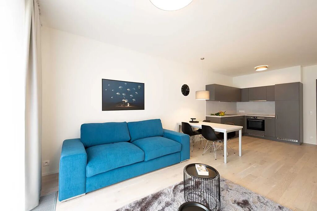 Interiér bytu tvoří obývací pokoj s plně vybavenou kuchyňskou linkou se spotřebiči, jídelním stolem a rozkládací sedačkou, samostatná ložnice s prostornou vestavěnou skříní a postelí, koupelna s vanou a WC, předsíň a samostatná komora s kombinovanou pračkou se sušičkou. Součástí vybavení bytu jsou záclony, závěsy a předokenní žaluzie.
