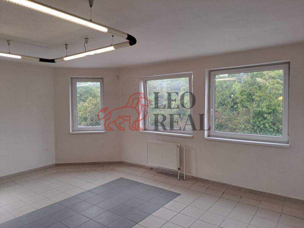 1. patro: dvě samostatné kanceláře, kuchyňka, společenská místnost/jídelna, dělené toalety a drobné zázemí