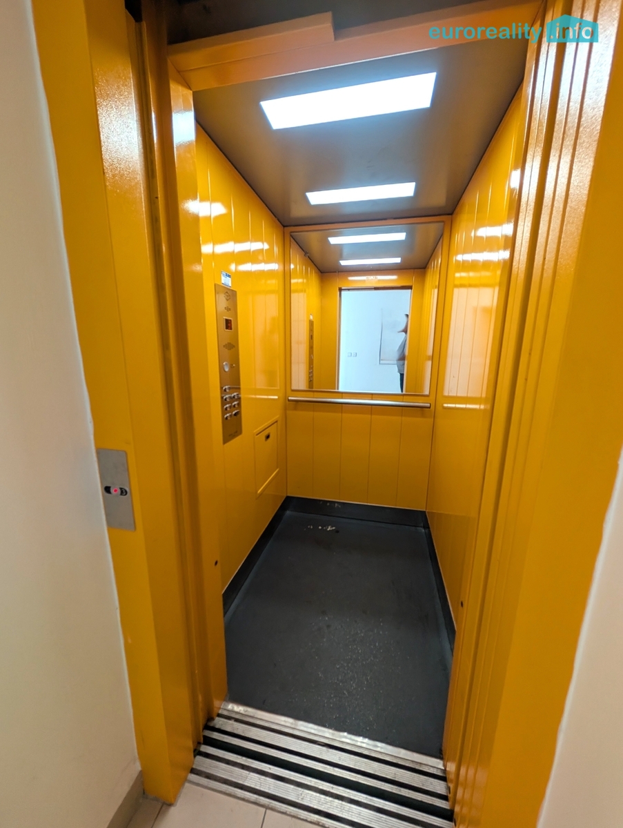 Byt je umístěn ve čtvrtém podlaží cihlového objektu, který disponuje moderním výtahem. Interiér bytu je částečně vybaven, což umožňuje novému nájemci přizpůsobit si prostor dle vlastních představ. Kuchyňská linka je vybavena moderními elektrospotřebiči, což usnadňuje každodenní vaření a přípravu pokrmů.