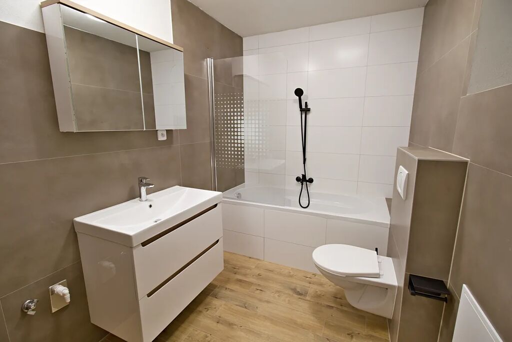 Nabízíme k pronájmu bytovou jednotku 2+kk, která se nachází v přízemí bytového domu. Byt byl právě dokončen a čeká na svého 1.nájemníka. Bytová jednotka je vybavena dle fotografií. K bytu náleží sklepní kóje. Máme zájem o slušné pracují nájemníky bez domácích mazlíčků. Měsíční nájem 13.000,-Kč plus energie a služby cca.4.000,-Kč. Kauce 26.000,-Kč plus odměna RK ve výši jednoho nájmu.