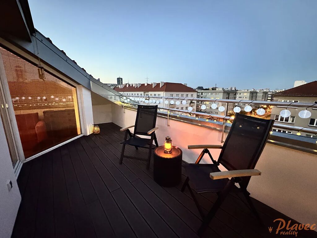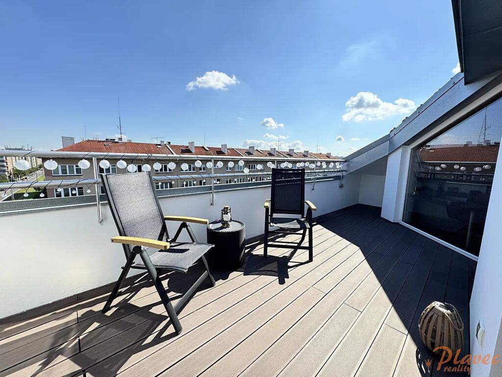 terasou v ulici Jerevanská, Praha – Vršovice. Byt se nachází v udržovaném, cihlovém domě, který prošel v roce 2010 rekonstrukcí, přičemž horní část, kde se byt nachází, byla vybudována jako novostavba. Jedná se o rohový byt o užitné ploše 59,59 m2, kde dominantou je terasa 14,24 m2 s krásným výhledem na Prahu. Byt je laděn v moderním stylu. Je ideální pro ty, kteří hledají