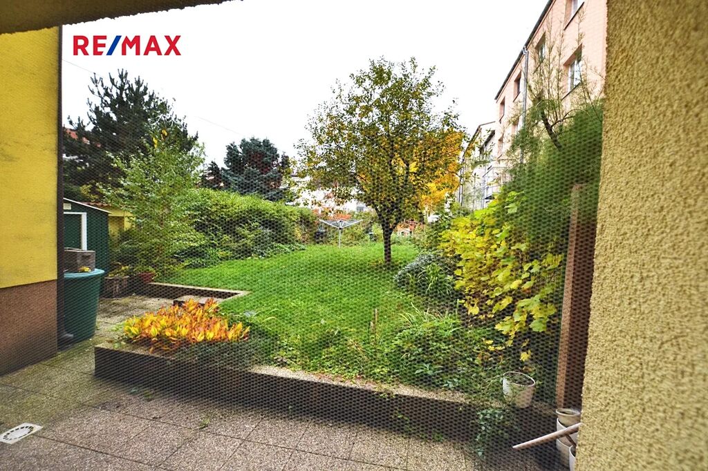 Byt byl rekonstruován, kuchyň je průchozí do obývacího pokoje a ten je průchozí do ložnice. Okna ložnice a koupelny jsou orientována do zahrady za domem.