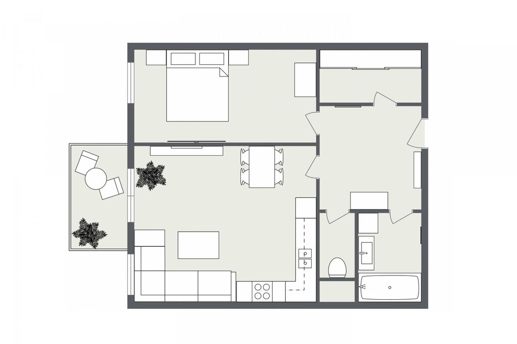 - dispozice je totálně skvělá. Možná si řekneš: co jako, dvakaka, jako všecky. Ale to by nebyla úplně pravda. Tohle má balkon se super výhledem, k tomu samostatnou šatnu a velkou koupelnu. Nic mi tady nepřišlo stísněné,