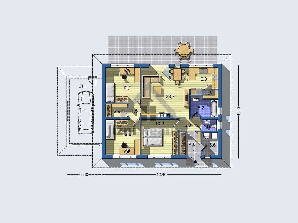 Nabízíme Vám k prodeji nový nízkoenergetický rodinný dům typu bungalov o velikosti 4+kk, který se nachází v atraktivní lokalitě a turisticky vyhledávaném prostředí v obci Nové Hrady. Nemovitost má velice lukrativní polohu na okraji obce v naprosto krásném a tichém prostředí. Dům se nachází na vlastním pozemku o velikosti 568 m2, zastavěná plocha domu je 123 m2 bez parkovacího stání a terasy, obytná plocha je 92 m2. Dům je nyní ve výstavbě a bude kompletně dokončen červenec 2025. V přízemí domu se nachází obývací pokoj s kuchyní, špajz, ložnice, dva pokoje, koupelna, WC, chodba, předsíň a technická místnost. Vytápění domu je podlahové – tepelné čerpadlo a krb v obývacím pokoji. Elektrika 220/380, napojení na obecní vodovod, kanalizace. Energetická náročnost budovy je A. V okolí bytu se nachází veškerá občanská vybavenost, školka, obchody, restaurace, cyklostezky atp. Vzdálenost do ČB je 34 km, k Rakouským hranicím je 2 km. Nemovitost je možné financovat hypotečním úvěrem. V případě jakýchkoliv Vašich dotazů mne neváhejte kontaktovat.