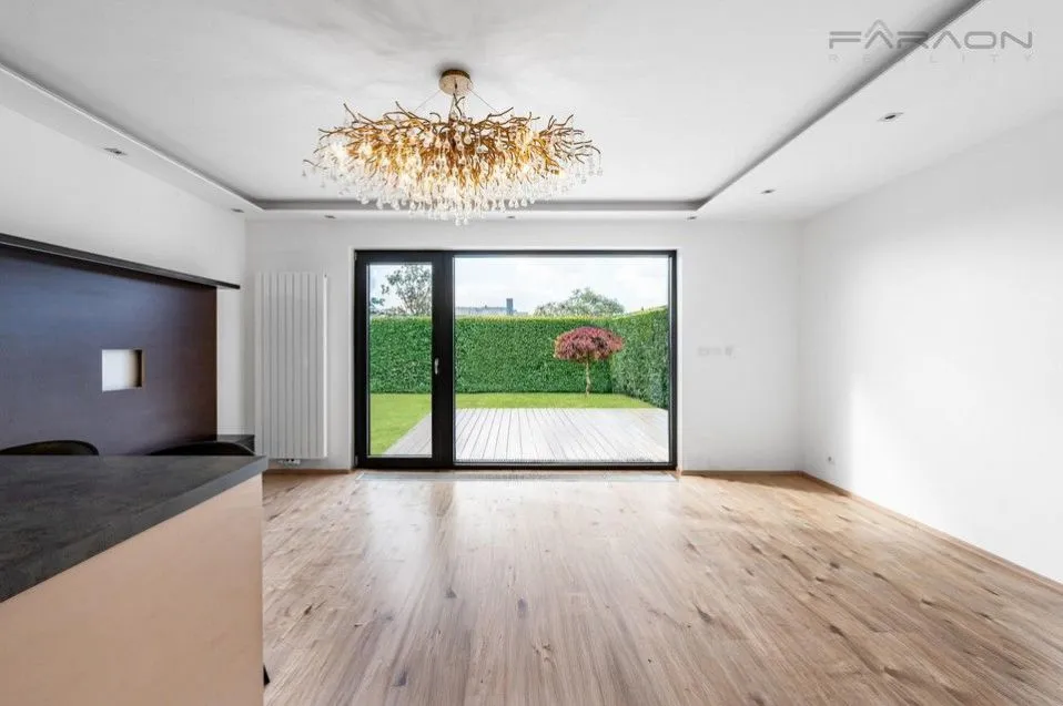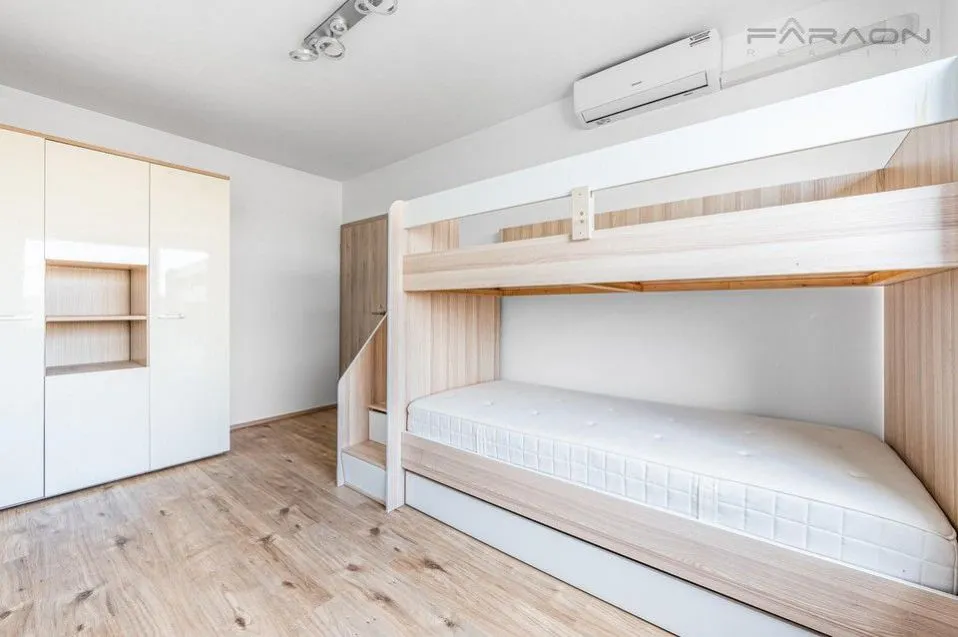 Dispozice domu 4+kk zahrnuje dvě nadzemní podlaží. V přízemí se nachází prostorný obývací pokoj s jídelnou a přímým vstupem na terasu, plně vybavená kuchyň v lesklém béžovém designu se spotřebiči AEG a Miele, samostatná toaleta, technické zázemí s prostorem pro pračku a sušičku a vstup do garáže. V patře jsou tři pokoje prostorná ložnice s vestavěnou skříní, pracovna/studentský pokoj s nábytkem na míru a dětský pokoj nebo pokoj pro hosty. Dále prostorná koupelna se sprchovým koutem, toaletou a samostatná šatna.