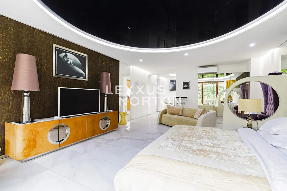 Byt je zařízený a k jeho vybavení navíc patří klimatizace, masážní vana, bidet, toaleta, sedací souprava, postel, televizní stolek a televize. K vybavení domu patří fitness a také sauna.