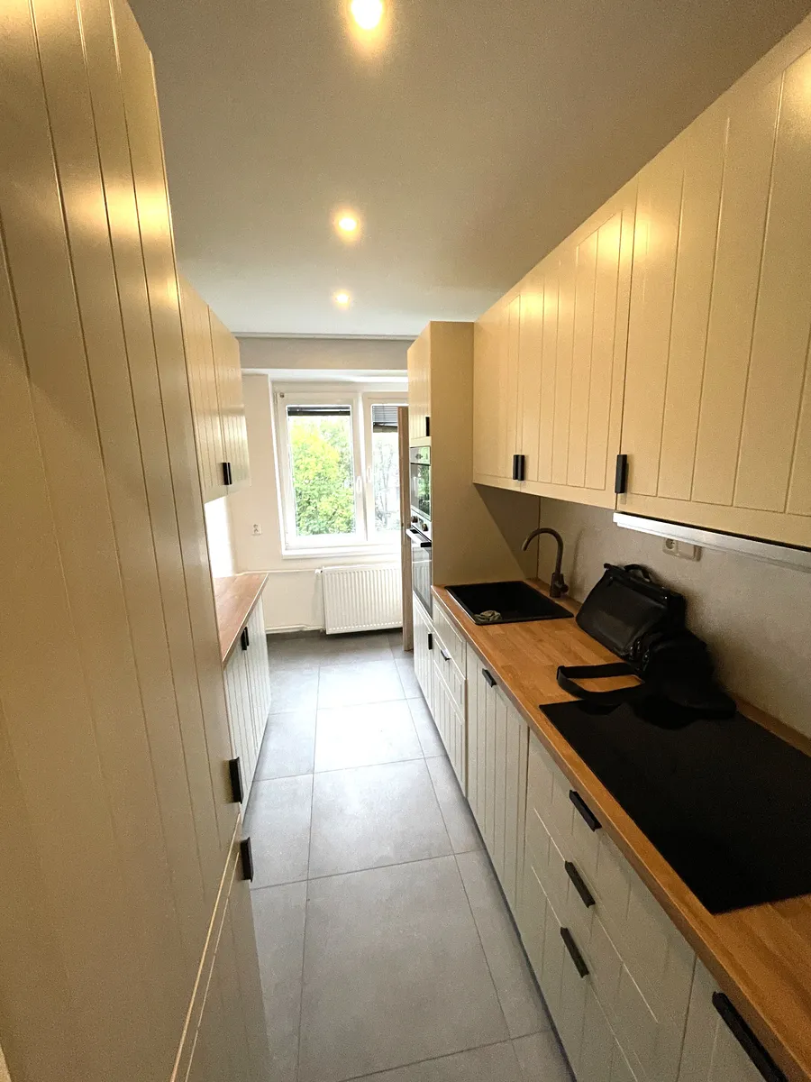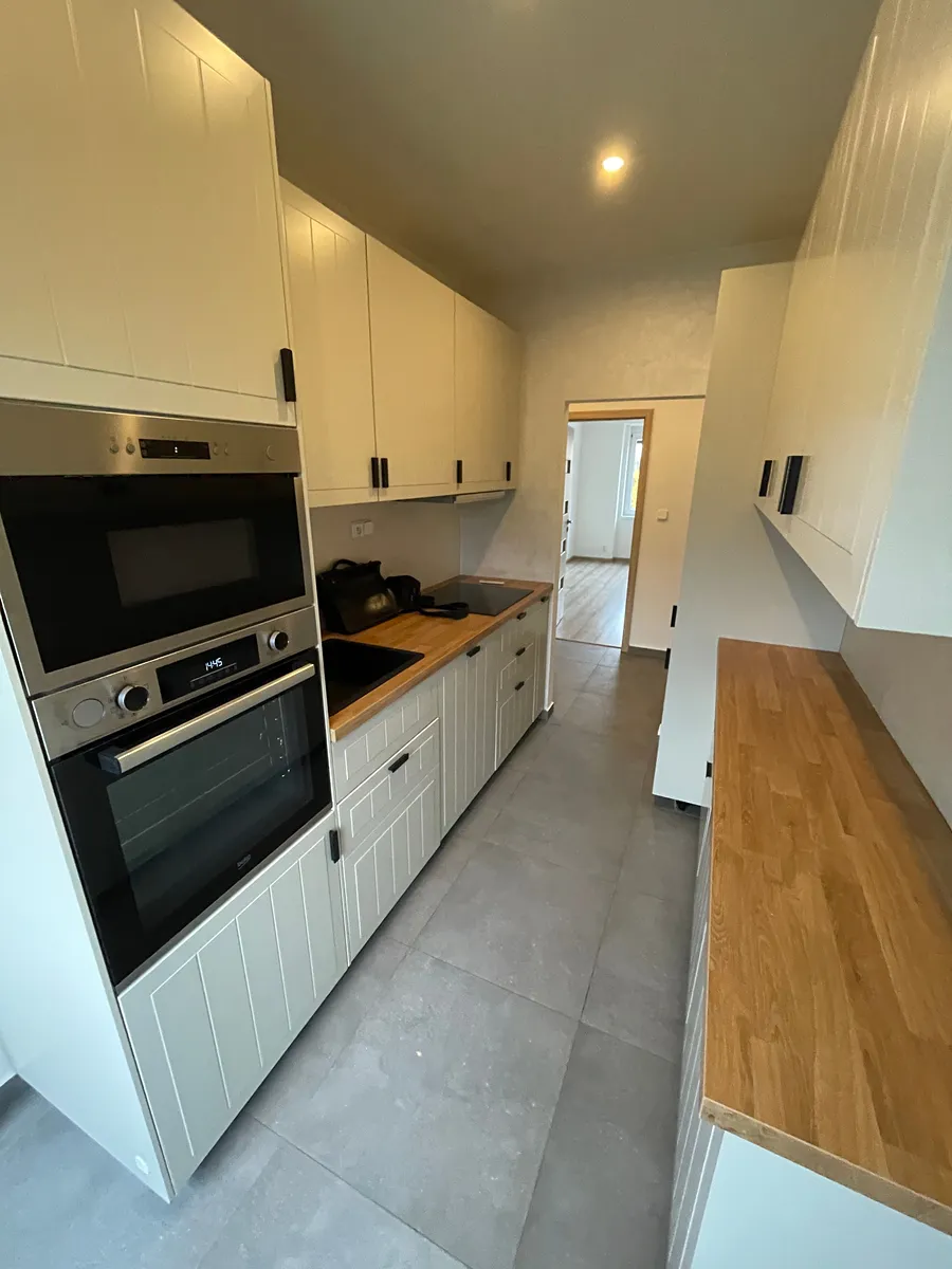 Hezký byt po kompletní rekonstrukci ve třetím patře cihlového domu s výtahem přímo u stanice metra trasy "C" Budějovická. Byt má dvě samostatné ložnice, obývák je průchozí. Byt je částečně zařízeným tak, jak je vidět na fotografiích. Kuchyňská linka s myčkou, indukční deskou, elektrickou troubou a ledničkou s mrazákem. V domě je místnost pro uložení kol a kočárků. Dům má dva vchody, jeden ústí do parku a druhý na hlavní ulici. Topení je centrální, ohřev vody elektrickým bojlerem. Cena 27000,Kč +5000,Kč poplatky + převod elektřiny, vratná kauce 32000,Kč, odměna pro realitní kancelář 20000,Kč. Volný ihned.