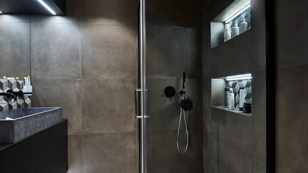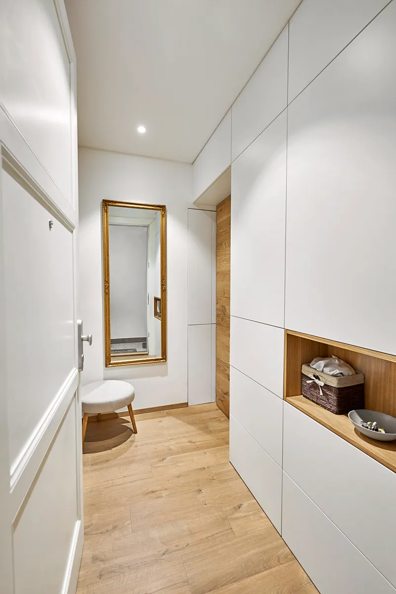 Jednotka se skládá z chodby s vestavenými skříní na oblečení a boty, obývacího pokoje s kuchyní, kuchyňským ostrůvkem, vestavnou knihovnou pod okny a TV skříňkou, koupelny s dostatkem úložných prostor, sprchovým koutem, betonovým umyvadlem Gravelli a toaletou od Laufen by Kartel a v neposlední řadě z ložnice s vestavnou skříní a integrovanou truhlářský řešenou postelí 180x200. Všechny místnosti osvětleny světly od českých designérů a výrobců jako Bomma a Brokis.
