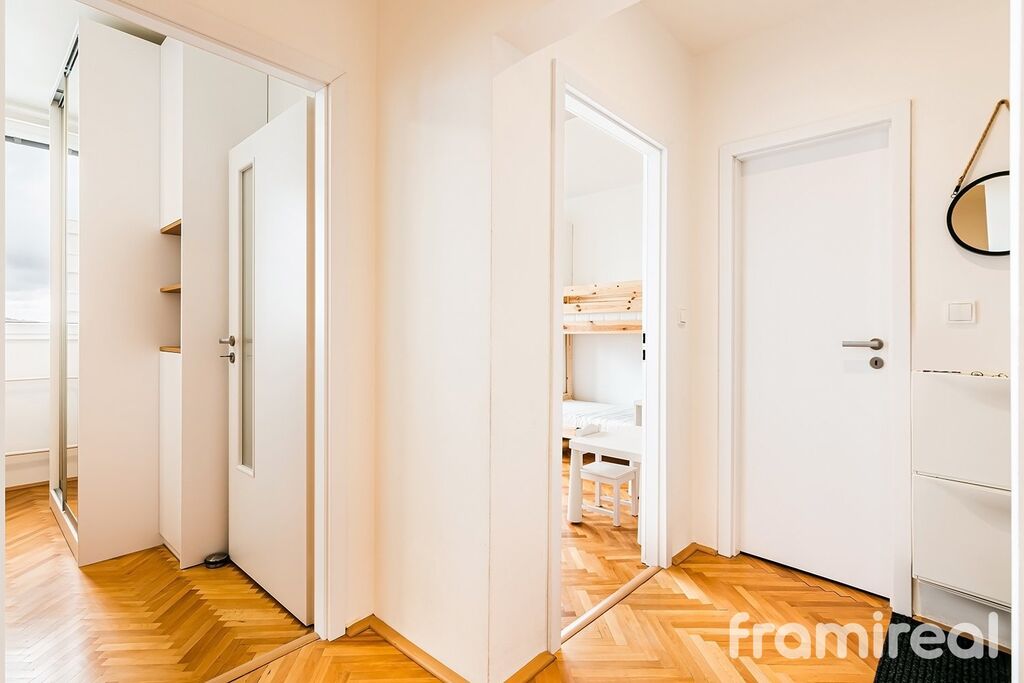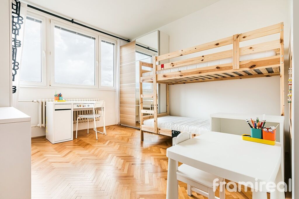 Dispozice zahrnuje dětský pokoj, ložnici a obývací pokoj, díky čemuž je byt ideální pro mladou rodinu. Okolí nabízí veškerou občanskou vybavenost, spoustu zeleně i výbornou dopravní dostupnost do centra města.