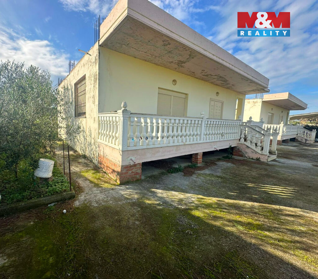 Tyto sousedící bungalovy jsou vhodné pro dvě spřátelené rodiny a nebo pro investora. Nachází se 300 m od pláže ve vilové čtvrti na jednom pozemku, případně by šly od sebe oddělit. Každý bungalov má dispozici 2+kk a zastavěnou plochu 87 m2 a byly postaveny před 10ti lety. Jeden z nich je dokončen a jeden ne. Vzhledem k betonovému skeletu a roxorům na střeše by na nich šly přistavět další 2 patra a nebo udělat střešní terasa. Na zahradě jsou ovocné stromy jako pomeranče, jabloně, olivovníky, dále vinná réva a trávník.