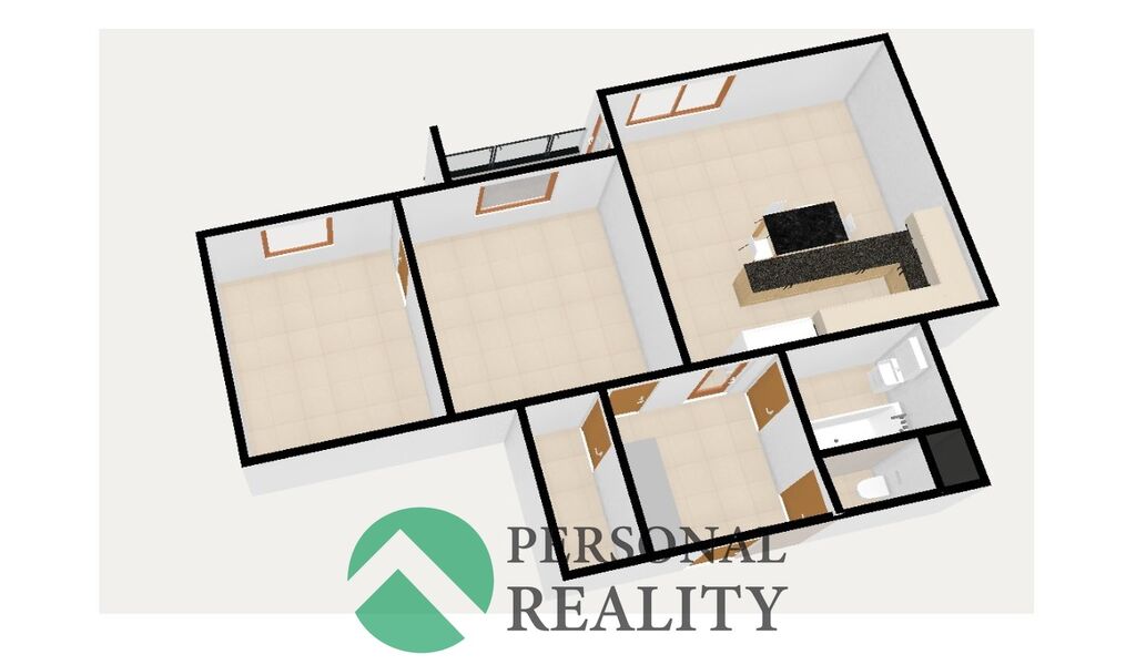 Dispozičně se jedná o byt 3+kk s velkou předsíní kde se nachází vestavěná skříň a vchody jak do koupelny, na WC, do šatny, do jednoho pokoje tak i do hlavní místnosti s kuchyňskou linkou se sporákem, lednicí, myčkou, troubou, digestoří a vchodem na balkón. Místnost disponuje velkým oknem a balkonovými dveřmi.