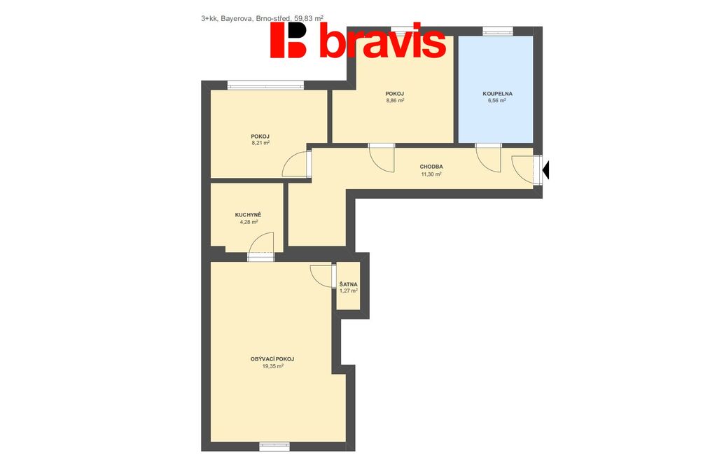 Ve výhradním zastoupení majitele nabízíme k prodeji byt o dispozici 3+kk, nacházející se v 5. patře cihlového domu s výtahem na oblíbené ulici Bayerova, jen pár kroků od samotného centra Brna.