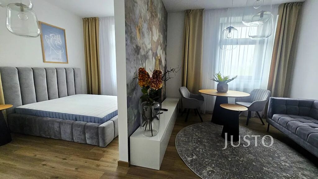 Byt je kompletně zařízen a vybaven kvalitními spotřebiči k dispozici je lednice, myčka nádobí, televize, parní trouba, indukční varná deska.
