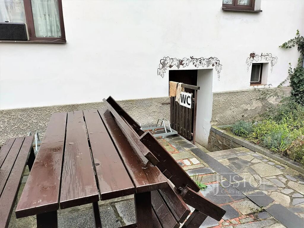 Venkovní terasa je umístěna ve dvoře objektu – přístupná průchodem ze sálu.