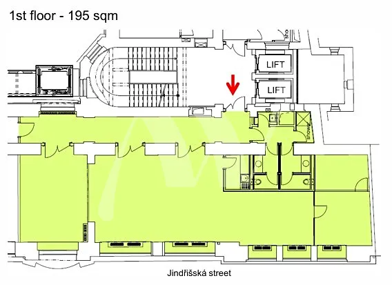Nabízíme k pronájmu kancelář o velikosti 195 m2 umístěnou v 1.patře budovy: