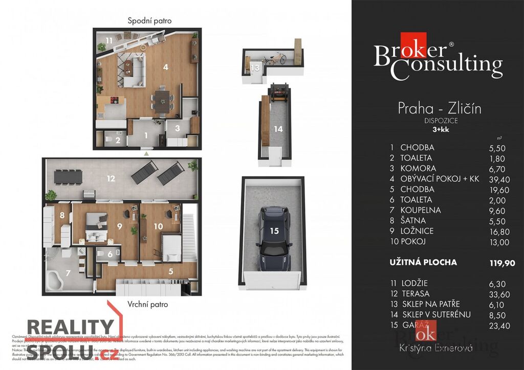 Prodej prostorného dvoupatrového bytu 3+kk (120 m²) s terasou, lodžií a garáží – Praha 5 – Zličín