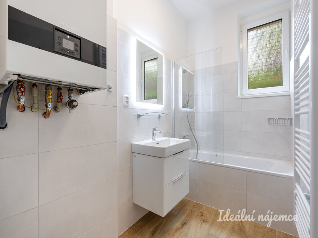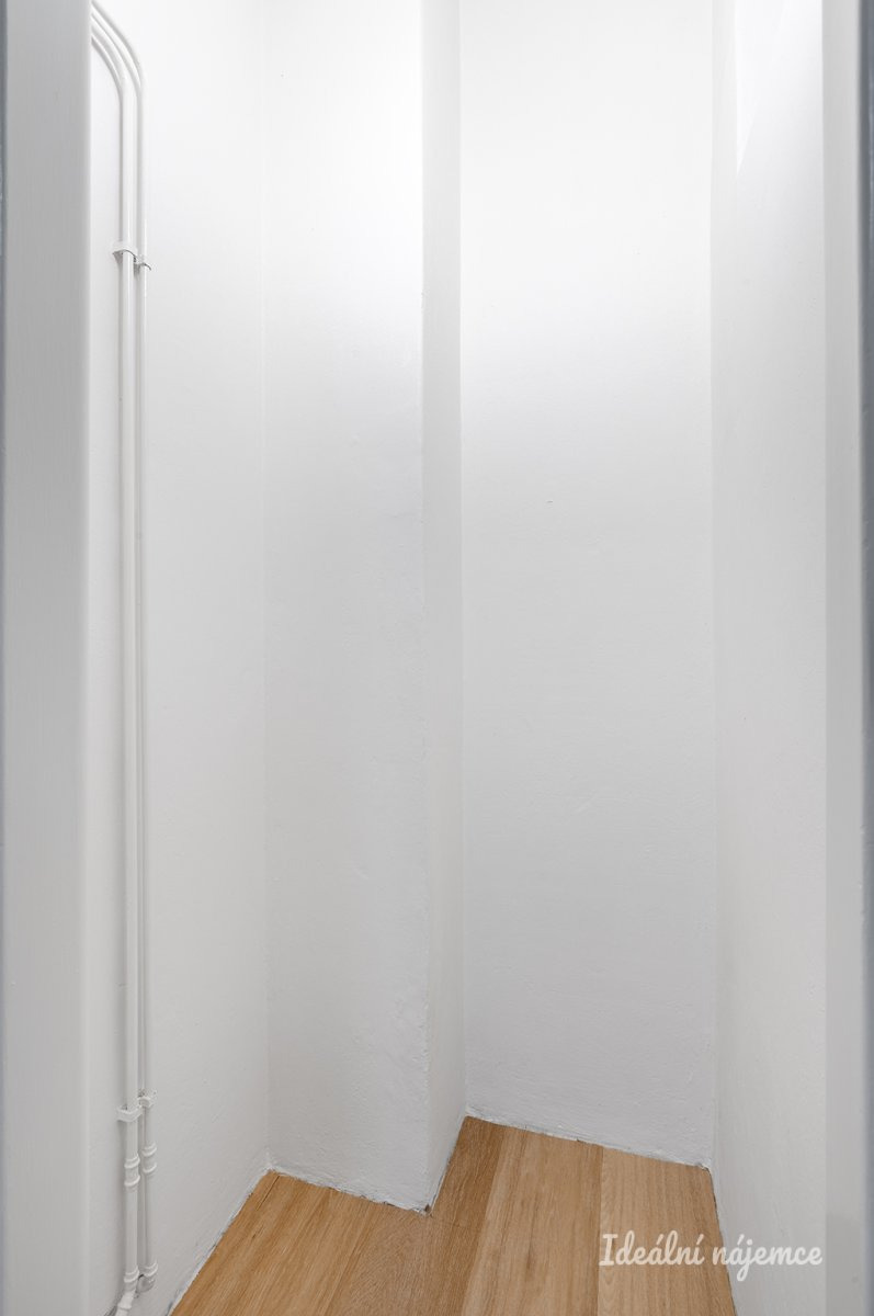 Byt je nabízen nezařízený, což umožňuje zařídit si interiér podle vlastního vkusu. Kuchyň je vybavena indukční varnou deskou, myčkou, elektrickou troubou, digestoří a dostatkem úložného prostoru. Obývací část nabízí světlý a prostorný prostor vhodný jak pro sedací soupravu, tak například pro jídelní kout. K dispozici je také jeden samostatný pokoj, který může sloužit jako ložnice. Koupelna je vybavena vanou a umyvadlem, toaleta je samostatná. Součástí bytu je i praktická šatna či úložná místnost.
