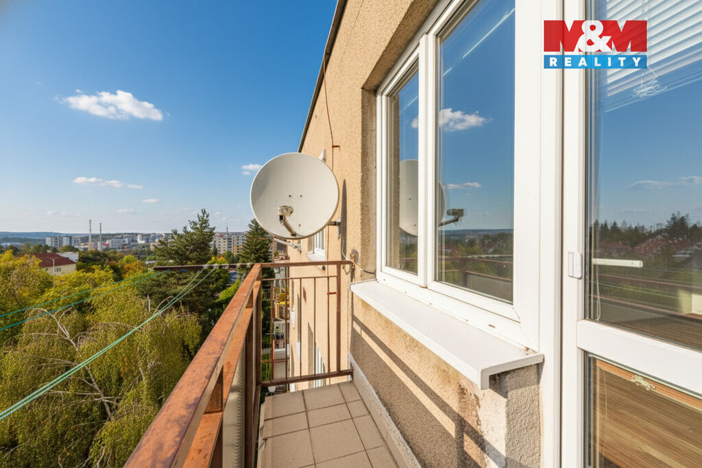 Dispozice zahrnuje obývací pokoj, ložnici, samostatnou kuchyň, koupelnu, WC a chodbu. K bytu náleží balkón orientovaný nad Spořilovskou ulici s výhledem na centrum města a sklepní kóje.